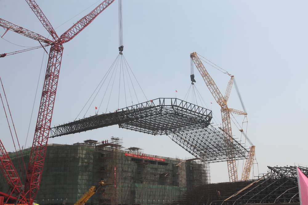 工程采用異形網架結構,網架平面尺寸13550㎡,建筑高度39.75m。