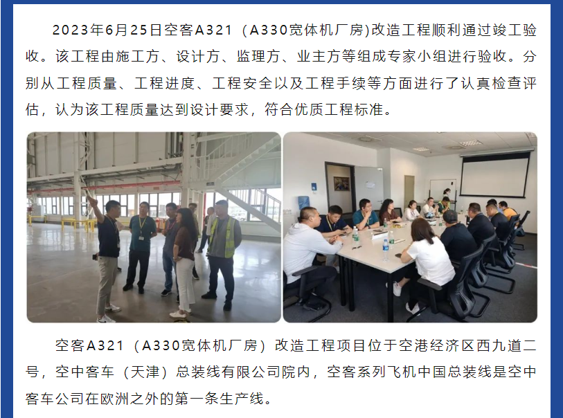 空客A321(A330寬體機廠房)改造工程項目順利通過竣工驗收