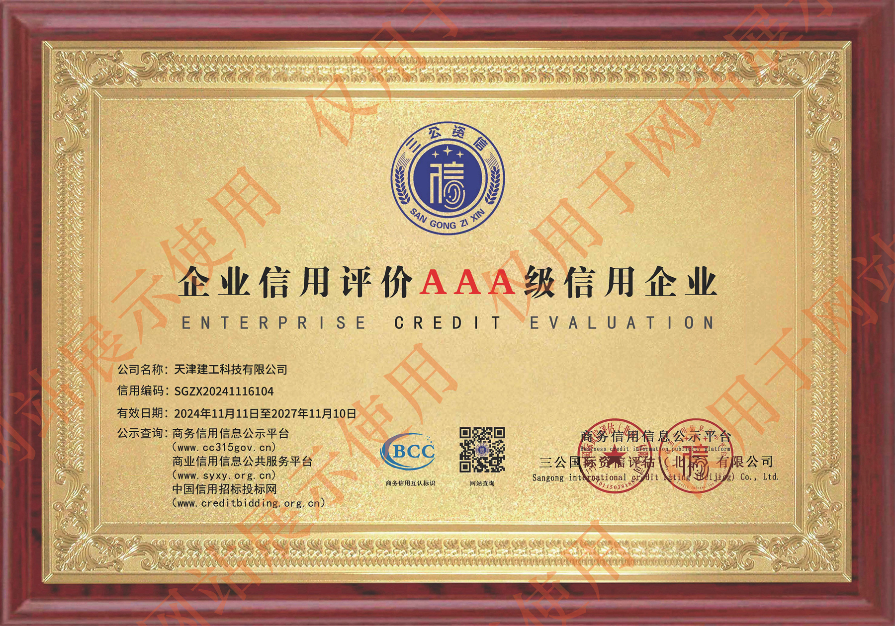企業信用等級證書AAA