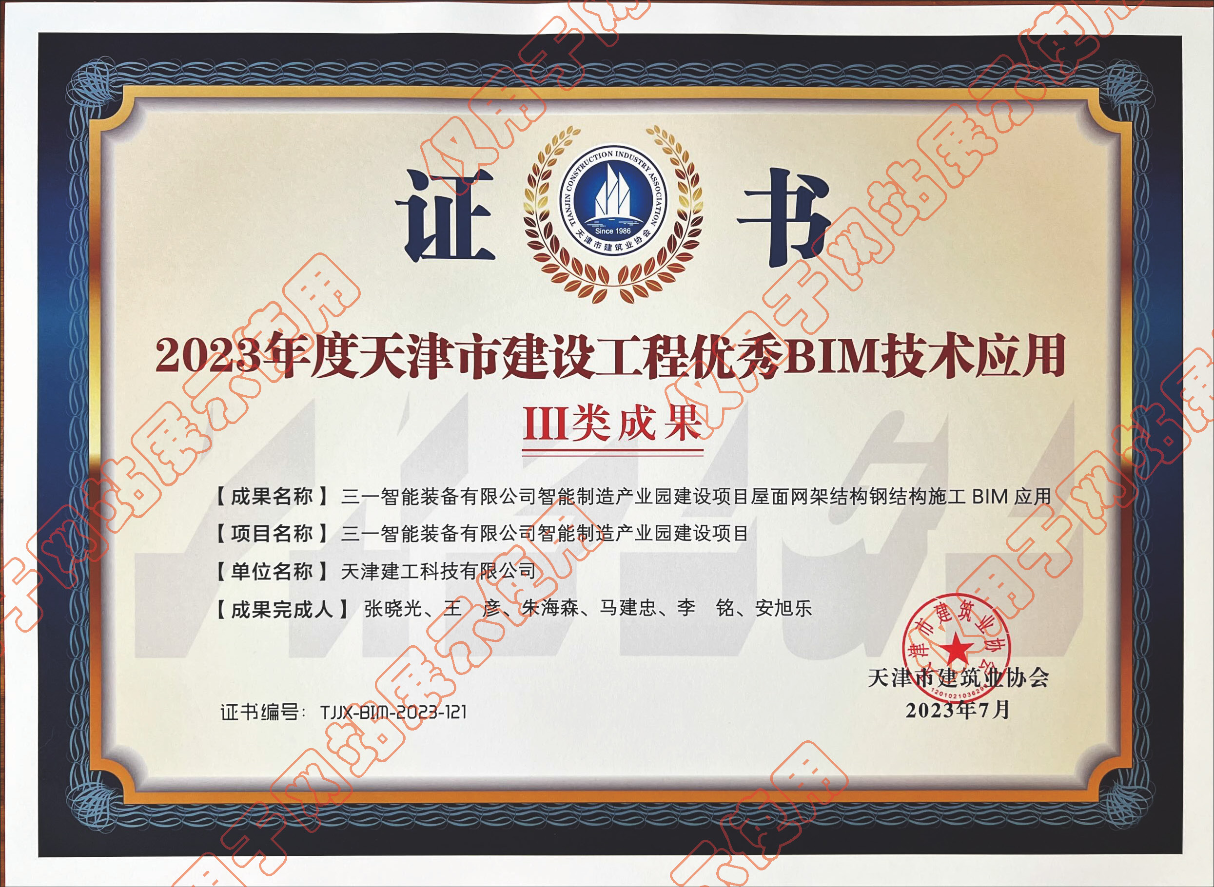 2023年度天津市建設工程優秀BIM技術應用Ⅲ類成果_三一智能裝備有限公司智能制造產業園建設項目屋面網梁結構鋼結構施工 BIM 應用