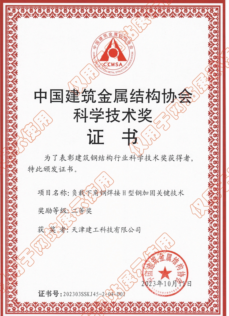 中國建筑金屬結構協會科學技術獎二等獎_負載下角鋼焊接H型鋼加固關鍵技術