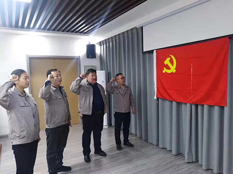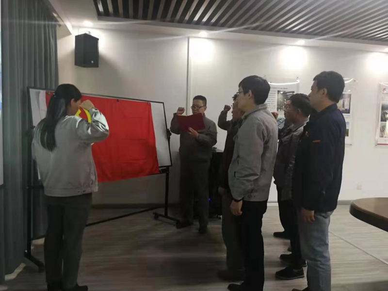 會議開始前,全體黨員佩戴黨徽,面向黨旗莊嚴宣誓。