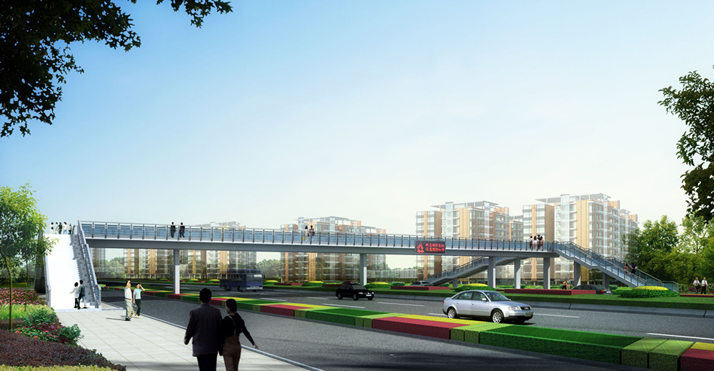 工程位于天津市西青區,二號人行天橋為四跨連續鋼箱梁橋。
