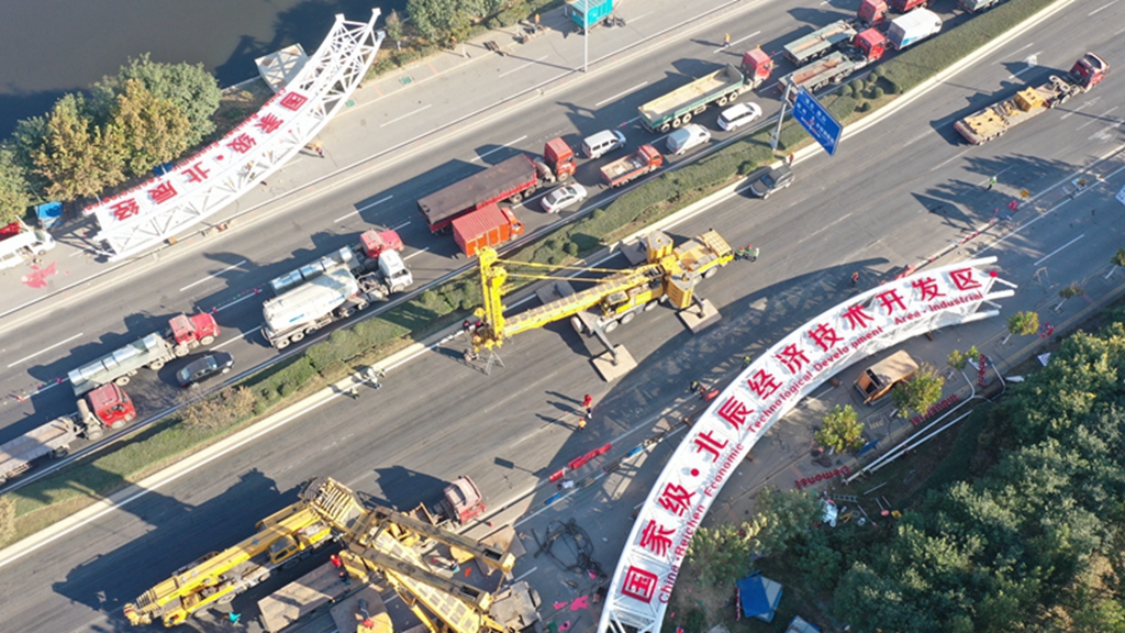 2020年11月3日,北辰經濟技術開發區標志門項目順利完成吊裝任務。