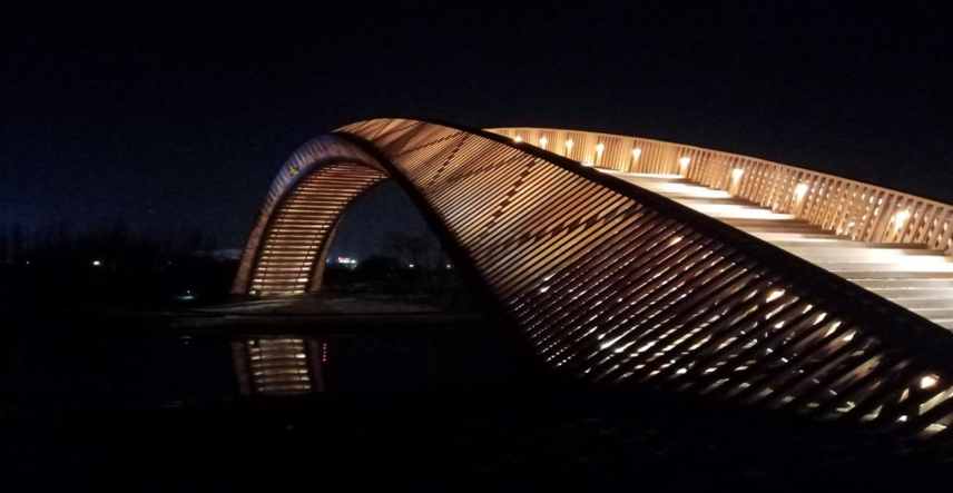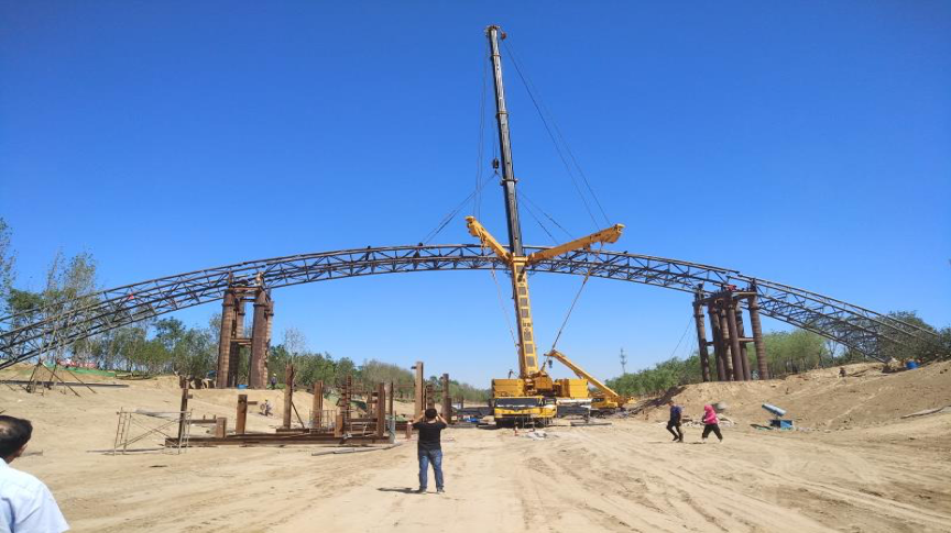 牤牛河綜合治理工程一期A段1#景觀橋工程采用管桁架結(jié)構(gòu)體系,本橋梁主橋長(zhǎng)90m,鋼結(jié)構(gòu)主體總重約96.2噸。本工程6*Φ273主管承載整個(gè)橋身的重量,每根主管的曲面和角度都自成體系,與次弦桿相連,位于r=60000mm的豎曲線上,曲率為60000R。兩側(cè)主桁架再與支撐梁相連接,形成整體鋼結(jié)構(gòu)橋身。